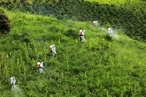 据介绍,黄脊竹蝗简称“竹蝗”,与沙漠蝗和飞蝗等远距离迁飞蝗虫不同,我国长江以南林区有分布。早在今年3月,农业农村部会同海关总署和国家林草局制定发布了《沙漠蝗及国内蝗虫监测防控预案》,并在云南边境地区安排监测站点,下拨财政资金,支持开展蝗虫监测防控。6月28日,黄脊竹蝗从老挝迁入我国云南边境地区,云南省各级党委政府高度重视,农业农村部门和林草部门密切跟踪监测境外迁入虫源。截至7月26日,黄脊竹蝗已在云南省普洱、西双版纳和红河3州(市)江城、宁洱、墨江、勐腊、景洪、绿春6县(市)累计发生面积14.06万亩,其中林地10.76万亩,农田3.3万亩,全省已调集植保无人机组52组,开展飞防作业1.03万架次,投入喷雾器1.12万台次,出动5.7万人次,累计防治面积35.47万亩次,其中林地30.06万亩次,农地防治5.41万亩次。经有效防治,尚未对农林生产造成大的危害。